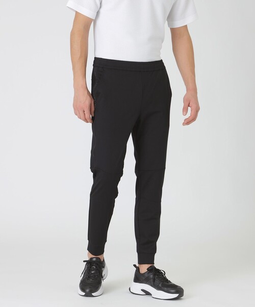 【光沢のある上品な素材感が特徴のハイゲージジャージートラックパンツ】ファッション性と機能性を兼ね備えたスポーティーなカジュアルウェアコレクション【BLACK lab.】から、高級感のあるハイゲージポンチ素材を使用したトラックパンツが登場します。ウエストゴム仕様での着脱のし易さに加えて、膝部分に施した切り換えによって動きやすさにも拘ったデザイン。フロントにはクレストブリッジチェック柄を表現したオリジナルのドローコード、サイド部分にはロゴプリント入りウレタンテープを使用し、スポーティーなディテールに拘った洗練された一着です。表地には、細番手のレーヨン糸とナイロン糸をハイゲージで編み上げたポンチ素材を使用しています。ストレッチ性に優れ、特殊シルケット加工によるしっかりとしたハリ感、レーヨン特有の美しい光沢と滑らかな肌ざわりを併せ持った高級感のある素材です。