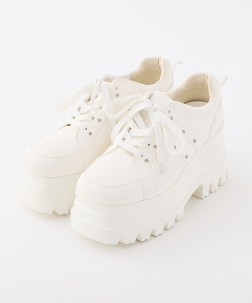 ~NICECLAUP 2026 Spring Collection~ボリューム感のあるトリプルソールが目を引くヒールスニーカー。さりげなくあしらわれたビジューが足元にきらめきをプラスし、カジュアルすぎず女の子らしい印象に仕上げました♡安定感のあるヒールでスタイルアップしながらも歩きやすく、デイリーからお出かけまで幅広く活躍します。■オススメスタイリングトレーナーやデニムなどカジュアルなコーデにはもちろん、シンプルなワンピースに合わせていただくのもオススメです。カラーソックスをあえて合わせてポイントにしても◎※サンプルでの撮影のため、実際のものと仕様や色が異なる場合があります。※室内、室外での撮影のため実際より明るく映っていたり、暗く映っていたりする場合がございます。※品質表示を必ずご確認下さい。【商品のお気に入り登録】完売カラーの再入荷や、ラスト1点のお知らせ、セールの通知を受け取ることができます。【ブランドのお気に入り登録】新作入荷や再入荷情報など、ブランドの情報をいち早くお届けします。ぜひご登録ください♪2026SS