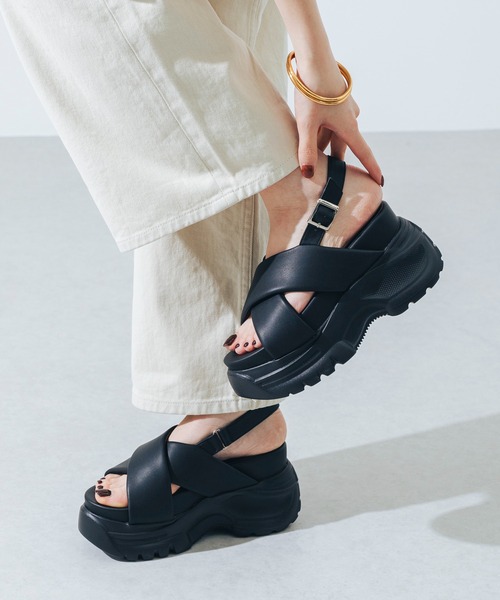 【EVOL 2026SS collection】ぷっくりとしたパデットが春夏のコーディネートにアクセントをプラスしてくれる厚底サンダル!アッパーには足当たりの良いふわふわな材料を使用し、ピタッと甲にフィットしホールド感抜群の履き心地です。バックベルトには一部ゴム素材を施しベルトを外さなくても着脱可能で、3段階お好みのサイズに調節出来るのも嬉しいポイント!約10cmの厚底ソールは見た目以上に軽量で、簡単にスタイルアップが叶うので低身長の方にもおすすめです◎普段使いはもちろん、長時間着用するテーマパークや推し活にもぴったりのアイテム!【対応サイズ】XSサイズ:21~21.5相当Sサイズ:22~22.5相当Mサイズ:23~23.5相当Lサイズ:24~24.5相当LLサイズ:25~25.5相当-----STAFF COMMENT-----【スタッフS】足長:右23.8cm・左23.8cm幅:標準・E甲:標準着用サイズ:Mコメント:Mサイズがぴったりです。甲部分にパデットクッションの厚みがあるので足が少し入りにくいですが、綺麗に収まれば窮屈感もなくて、安定感があってすごく履きやすいと思いました!厚底ですが、高低差が少なめなので普段あまり厚底を履かない私でも履けそうです◎甲部分は履いていくうちに馴染みやすいので、足が入りにくくてもなるべくぴったりめのサイズを選ぶ方が安定感があっておすすめです。【スタッフI】足長:右23.5cm・左23.8cm幅:細め・B甲:低め着用サイズ:Mコメント:クロス部分がボリュームたっぷりなので、甲が薄くてもしっかりと足が止まってくれるのでMサイズで丁度でした。アッパーだけでなく、ストラップも柔らかく足当たりがよかったです。【スタッフT】足長:右23.5cm・左23.5cm幅:やや細め・C甲:標準着用サイズ:Mコメント:私は普段23.5cmもしくはMサイズを着用することが多く、ゆったりめの履き心地が好きですがMサイズがちょうど良かったです。足当たりが良く肌馴染みが良いので窮屈感も気になりませんでした。【チャットで気軽に相談】InstagramのDMにて、気になる着用感や素材など、お気軽にご相談ください。動画・写真で詳しくお伝えすることも可能です!※履き心地には個人差がございますので、あくまでも目安としてご覧ください。※商品画像はサンプルを使用しているため、色味やサイズ等の仕様に変更がある場合がございますので、予めご了承ください。【EVOL/イーボル】instagram(evol_official0)レディース サンダル 厚底サンダル 厚底 スポサン パデット ふわふわ ふかふか クッション性 軽量 軽い 10cm 美脚効果 脚長効果 スタイルアップ 低身長 バックベルト バックストラップ サイズ調節可能 ホールド感 フィット感 安定感 歩きやすい 疲れにくい 痛くなりにくい カジュアル 大人カジュアル シンプルコーデ カジュアルコーデ ミニ丈 デイリーユース お出かけ デート 女子会 旅行 アウトドア テーマパーク ライブ鑑賞 推し活 ソックス合わせ 靴下合わせ 小さいサイズ XSサイズ 21cm 21.5cm 大きいサイズ LLサイズ 25cm 25.5cm