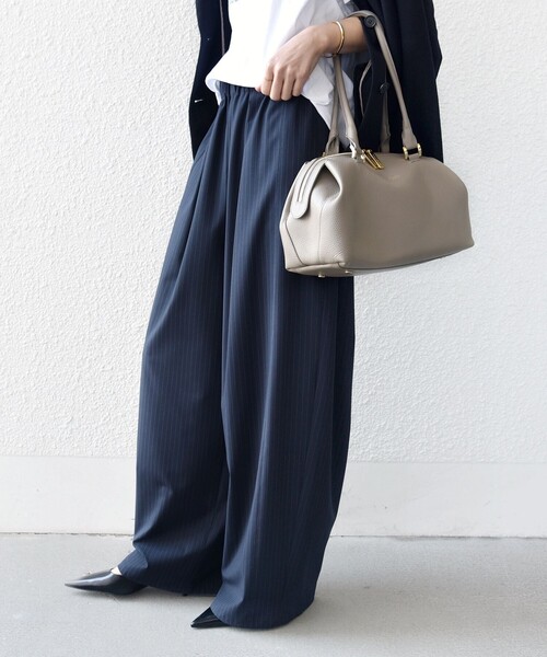 ―26SS― ご好評により新色「ベージュ」が登場! リラックス感と端正さを兼ね備えた 万能ストライプパンツ ■デザイン ウエストはぐるりゴム仕様で、リラックス感のある穿き心地。 トップスやシューズに合わせて穿く位置を調整できるのも嬉しいポイントです。 太すぎないカーブシルエットと、落ち感のある素材によってストンときれいに下に落ち、すっきりとした印象に。 ウエスト内側にはサイズ調整が可能な紐付きで、安定感のあるフィット感を叶えます。 細かなピンストライプが程よいアクセントになり、シンプルなトップス合わせでも上品に決まる一本です。 ■素材 適度なハリ感としなやかさを兼ね備えた素材を使用。 毛羽の少ないクリアな表面感と心地よい滑らかな肌触りが特徴です。 ■コーディネート ハンサムなピンストライプは、きちんと感のあるシャツからカジュアルなスウェットまで幅広く相性◎ 夏はTシャツ合わせで軽やかに、季節が進んだらヘアリーなニットを合わせても表面がクリアなので毛が付きにくく、ストレスなくスタイリングを楽しめます。 ■お問い合わせ品番:313-11-3183 ------------------------------------- 生地の厚み:中間 伸縮性:有 透け感:無 光沢感:無 ポケット:有 手洗い:手洗い可 ------------------------------------- ※撮影環境により商品の色味が異なって見える場合がございます。商品のお色味は、物撮り画像をご参考にしてください。 ※末永く愛用頂く為に、アテンションタグを必ずご確認の上、着用又はお取り扱いください。 ※画像の商品はサンプルです。 実際の商品と仕様、加工、サイズが若干異なる場合がございます。