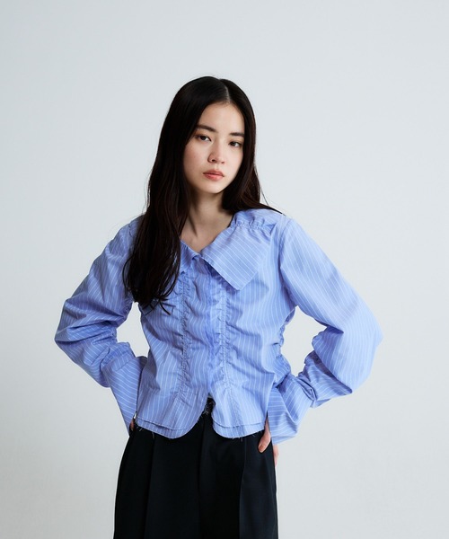 ーーーたっぷりのギャザーディティールと大きい襟がポイント♪甘さの中にJEANASISらしいモードさをプラスしたブラウスーーー■Designトレンドの甘め要素をJEANASISらしくモードに表現。ヒップにかかるくらいのジャスト丈で、ボトムスのシルエットを選ばずにスタイリングを楽しめます。本体・袖にたっぷりのシャーリングギャザーを寄せ、1枚で着ても映える1着。前立て・襟を断ち切りデザインにすることで、甘くなりすぎずモードな印象で着用できます。コンパクトな着丈と、ボリュームのある袖の対比にこだわったアイテムです。■Material 適度にハリのあるポリエステル×綿素材を使用。肌当たりがさらっとしているので、着心地◎どんなスタイリングにも合わせやすいカラー展開も魅力です。■Stylingトップスとしてはもちろん、ニットやカーディガンのインナーとしても◎暑い時期はフロントを開けて羽織としての着用もオススメです。ややコンパクトな着丈なので、トレンドのボリュームボトムとのスタイリングがオススメです。・透け感:やや透ける(ホワイト)・伸縮性:なし・生地の厚さ:普通・裏地:なし・洗濯:液温は40 ℃を限度とし、手洗いができる※さらに詳しいお手入れ方法は品質表示タグをご確認下さい。 絵表記通りのお手入れを推奨しております。-INFORMATION-◆お買い物をよりお楽しみいただく為に『♡』をクリックしてお気に入り登録がおすすめ!・完売カラーの再入荷通知や、ラスト1点の通知、セールになった際も通知を受け取ることができます★◆ブランドのお気に入り登録新商品や再入荷など、お得な情報を受け取ることができますので、是非ご登録ください♪※屋外の光や照明の当たり具合で、実際の商品の色味とカラー別画像の色味に違いが発生する場合がございます。 商品の色味はスタジオ撮影の詳細画像にてご確認ください。