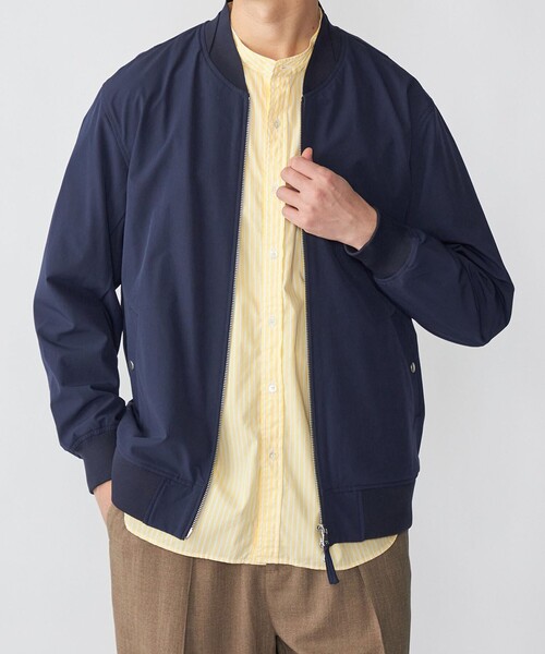 無駄をそぎ落とした上品なMA-1ブルゾン 【素材特性】 肌離れの良い2重織りのナイロン生地を使用。 撥水性・UVカットの機能面にも優れます。 -------------------------------------------- 洗濯可否:洗濯不可 -------------------------------------------- 【デザイン】 MA-1型をベースに装飾を削ぎ落としたミニマムなデザイン。 袖ポケットを無くし、全体的にクリーンな仕様に仕上げています。 カジュアルな印象になりすぎないため、さまざまなコーディネートにマッチします。 【スタイリング】 カットソーやシャツ等、あらゆるアイテムと相性抜群。 ミリタリーなムードときれいめな雰囲気を両立できるSHIPSならではの一着です。 【注意事項】 ※末永く愛用頂く為に、アテンションタグ・洗濯ネームを必ずご確認の上、着用又はお取り扱いください。 ※撮影環境による光の当たり具合やパソコン・スマートフォンなどの閲覧環境によって、実際の色味と異なって見える場合があります。 商品の色味は商品単体で撮影した画像をご参照ください。 ※画像の商品はサンプルです。 実際の商品と仕様、加工、サイズが若干異なる場合がございます。