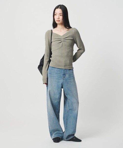 辛口なアイテムと合わせたいフェミニンムードのリブニット■デザインクラシカルな雰囲気が薫るスカラップネックのリブニットプルオーバー。タックを前身頃に寄せた甘さのあるディテールでありながら、広めの首の開きでヘルシーな印象に仕上げました。凹凸のある表面感のリブニットで、ほどよくフィットするコンパクトなシルエット。裾の始末を袋編みにすることでレトロな雰囲気をプラスしています。■素材ポコポコとした凹凸感のある、愛らしい表情のカジュアルな糸を使用したニット。変形リブのやわらかな肌当たりと毛羽が控えめなすっきりとした質感が特徴です。■コーディネートカジュアルなデニムやマニッシュなスラックスとテイストミックススタイルが◎。ジャケットやセットアップのインナー使いにもおすすめです。============================裏地:なし透け感:オフホワイトのみややあり光沢感:なしケア方法:ドライクリーニング============================【注意事項】※商品に「取り扱い上の注意書き」、「洗濯表示」がございます場合は、使用前に必ずご確認ください。※商品画像は、光の当たり具合やパソコンなどの閲覧環境により、実際の色味と異なって見える場合がございます。あらかじめご了承ください。※商品の色味の目安は、商品単体の画像をご参照ください。店舗へお問い合わせの際は、全国のBEAUTY&YOUTH各店舗まで下記の品名/品番をお申し付けください。品名:BY C/NY KNT/Y SCALLOP PO 品番:16131000036