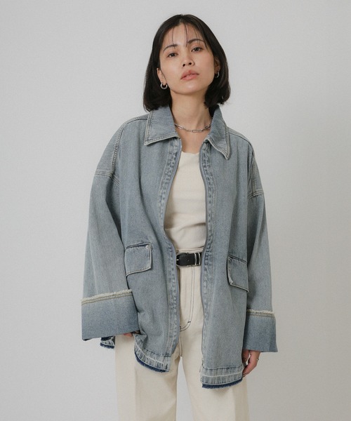【Floran デニムジャケット】 \ラフすぎないがちょうどいい/ 大人の日常に寄り添うデニムジャケット ■Styling カジュアル定番のアイテム、デニムジャケットをFloranらしく今の大人に似合うバランスで再構築。 全体は程よくゆとりをもたせたリラックスシルエット。 体のラインを拾わず羽織るだけで自然とこなれた印象に◎ フロントはダブルジップ仕様にすることでGジャン特有の硬さを抑え きれいめにもなじむ一着に仕上げました。 ライトブルーは抜け感のある軽やかな印象。 ワンウォッシュはシックで落ち着いた大人の雰囲気。 カラーによって表情が大きく変わるのも魅力です。 スラックス×ローファーで大人キレイめカジュアルに、 ワンピースやタイトスカートに合わせて甘めのスタイリングで女性らしさをプラス。 デニムパンツと合わせたオールデニムで旬顔にも◎ インナーをニットやスウェットに変えれば秋冬を活躍と幅広い季節に対応してくれます。 ※こんな方におすすめ ・デニムジャケットは好きだけどカジュアルすぎるのが苦手 ・大人っぽく着られる羽織りが欲しい ・季節の変わり目にさっと着られるアイテムを探している。 ・長く愛用できるベーシックを選びたい。 ベーシックだからこそシルエットと素材にこだわった一着。 日常のスタイリングに自然と溶け込み、長く愛用していただけるデニムジャケットです。 ■Detail Wジップで裾だけ開けたりと着こなしが楽しめます。 ジップなので着脱がスムーズ。 程良く肩を落としたリラックス感のある設計です。 袖口は裁ち切りにしており特有のUSED感が楽しめます。 少し大きめの襟と広めの袖幅がポイント。 ポケット位置やステッチで立体感を演出。 ■Material 通年使いやすい10ozデニムツイルです。 着るほど体に馴染みます。 シーズンレスで着用しやすい程良い厚みが嬉しい。 ▽生地感 透け感:あり 〇〇〇〇● なし 生地の厚さ:厚い 〇〇●〇〇 薄い 裏地:なし 伸縮性:なし ※この素材は摩擦(特に湿った状態での摩擦)や、汗や雨などでぬれた時は他の衣料や下着・バッグなどに色が移る場合がありますので、ご注意下さい。 ※繊細な素材を使用している為、引っ掛かりには十分お気をつけください。 ※洗濯の際は、他の物と一緒に洗わないでください。 ※濡れた状態で他の洗濯物を重ね合わさないでください。 ※漂白剤および漂白剤入りの洗剤のご使用はお避け下さい。 ※水洗いやクリーニングの際は、クリーニングネットを使用ください。また、つけおき洗いはお避けください。 ※商品の梱包には細心の注意を払っていますが、通販の特性上、到着時に畳みシワがついている可能性がございます。予めご了承ください。 ※詳しいお手入れ方法は商品タグをご参照ください。 【Information】 ◆《お気に入り登録》がオススメ◆ ・「商品のお気に入り登録」で再入荷通知や、ラストの通知、セール通知も受け取ることが出来ます。 ・「ブランドのお気に入り登録」で新商品や再入荷など、お得な情報を受け取ることが出来ます ※撮影時のライティング、太陽光、ご覧になっているモニター・PC環境により、実際の商品と色味が異なって見える場合がございます。予めご了承をお願い致します。