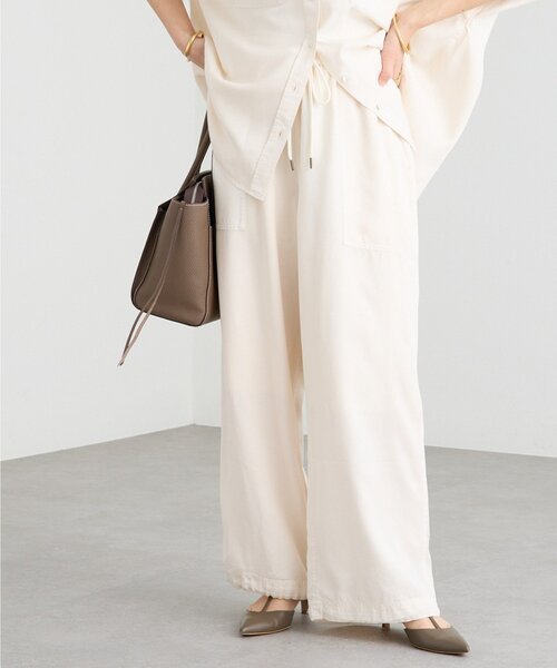 履くだけでおしゃれ見えするパンツがアップデートして登場!●デザイン・昨年のデザインを生かしつつ、裾をドロストできるようにアップデート・裾が搾れるようになったことで、シルエットを変えられて、より多くの方に履いていただきやすいようになりました。・ステッチワークをしっかりと入れることで製品染めの良さを生かしています・エクリュのみ裏付き・同素材のシャツとセットアップ着用可能※同素材でガーメントダイワイドシャツ(RDZ1061104A0002)、ガーメントダイフレアバイアススカート(RDZ1061101A0001)もございます。セットアップで着用いただけます。▼ATTENTION▼・36サイズは38サイズより股上ー1cm 、股下ー2.5cm小さくなっております。・製品染めなので、1点1点風合いが異なります・濃色と淡色で染料が異なるので、下記アテンションご確認お願いいたします。《Q&A》Q1:汗染みは気になりますか?⇒ゆるっとしたシルエットのため、肌に密着せず、気になりづらくなっておりますが、汗の量によっては汗染みが出来る場合がございます。Q2:洗濯の仕方やアイロンは必要??⇒ご自宅で手洗い可能。手アイロンで伸ばしていただければ、シワは気になりづらくなります。気になる場合はアイロンがおすすめです。Q3:淡色は下着が透けてしまいますか?⇒膝までの裏地が入っておりますので、安心してお召しいただけますが、気になるようであれば、濃色の下着は避けていただき、肌色に違いベージュなどの下着がおすすめです。<エクリュ、カーキ>この製品は、顔料染めの生地を使用しており、ファッション性を重視した製品です。染料の特性上、次の点にご注意ください。●加工特徴上、着用や洗濯の繰り返しにより、表面が徐々に白化していきますので、洗濯の度に色相の変化を楽しむことがでます。また、バッグ等による過度の摩擦や強いもみ作用により、むら状に白っぽく変色していきますので、ご了承ください。●ドライクリーニングはできません。●摩擦(特に汗や雨などで湿った状態の摩擦)により他の衣料やバッグ等に色移りすることがありますのでご注意ください。●同色系との組み合わせをお勧めいたします。●取扱いの際は、取扱い表示をご確認ください。<モカ>この製品は製品染めの為、多少色落ち、色むらがあります。摩擦(特に湿った状態での摩擦)や、汗や雨などで濡れた時は他の衣料に色移りする場合がありますので十分ご注意ください。他の物と一緒の洗濯は避け、脱水後速やかに形を整えて陰干ししてください。また着用の際には白や淡色のものとの重ね着は避けてください。色が移る場合があります。※全色ともに単独洗いでお願いいたします●素材《エクリュ以外》再生繊維(セルロース) 100%《エクリュのみ》表地:再生繊維(セルロース) 100%裏地:ポリエステル 80% 綿 20%・セルロースの柔らかく落ち感がある風合いの素材・微光沢感のある素材を製品染めで仕上げることで、加工感をいれて抜けのあるムードを演出しています洗濯方法:手洗い可透け感:なし裏地:エクリュのみあり伸縮性:ウエスト部分あり生地の厚さ:-光沢:ややありファスナー:なしポケット:あり▼商品の詳細情報はブログで解説▼ --------------------------------------------------------------------------------【お買い物をもっと便利に楽しく♪】『♡』をクリックでお気に入り登録✓「商品のお気に入り登録」で・・・ラスト1点や再入荷の通知が届きます。登録して頂いた商品だけが対象となる、あなただけのタイムセールが開催されることも!✓「ブランドのお気に入り登録」で・・・新商品や再入荷など、いち早くブランドのお得な情報を受け取ることができますので、ご登録をおすすめします!--------------------------------------------------------------------------------【注意点】※画像の商品は光の照射や角度、お使いのモニター環境により、 実物と色味が異なる場合がございます。※入荷状況により、お届け予定が前後する場合があります。※お客様への発送が店頭販売より遅れる場合もあります。※追加生産商品は、一部の店舗、通販で販売中の場合がございます。 予めご了承下さい。----------------------------------------------------------------------