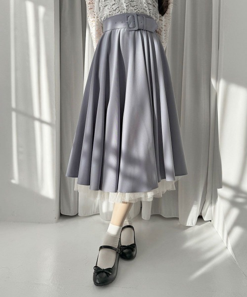 ■デザインポイント思わずくるりと回りたくなるような、ボリューム感のあるシルエットが目を惹くパニエサーキュラースカート。チュール素材でボリュームを出すことで、下にパニエを履いているかのような美シルエットを生み出します◎ベルト付きのためトップスをインすると、上品でレディライクな雰囲気を漂わせてくれます。■オススメスタイリングクラシカルなトップスとムードたっぷりにコーデを楽しむのがオススメ。ハンドバッグやパンプスを合わせると、いつもよりワンランク上品なスタイリングが叶います。======ポケット:ありファスナー:サイドファスナーありウエストゴム:背中部分のみあり裏地:あり生地感:ふつう透け感:なし======※アイロンは当て布を使用してください。▼an another angelus/アンアナザーアンジェラス『パリの裏通りにひっそりとたたずむ小さな隠れ家。その扉を開けると…』 懐かしくも新しいレトロ感をレディライクに表現し、大人の女性のワードローブを提案。50年代パリのメゾンからインスパイアされたモードなシルエットやクチュール感のあるディティールにこだわった「Mode of classic」のアイテムも展開中です。▼Fint/フィント50~70年代のクラシカルなヴィンテージデザインに トレンド感をプラスしたレトロ&ガーリースタイルをお届け。 古着屋で一点ものを見つけるような【ときめき】を感じられるブランドです。70s~90sストリートからイメージしたアイテムにレトロ&ガーリー要素をMIXしたトレンド感あるカジュアルアイテムが揃う「Pink Label」のアイテムも展開中!▼商品のお気に入り登録▼気になるアイテムの♡をクリックしてお気に入り登録すると残り1点の通知、完売カラーアイテム再入荷の通知、お得な通知が届きます。▼ショップお気に入り登録▼ショップからの新作商品やお得なイベント情報など、いち早くブランドからの情報を受け取ることができます。