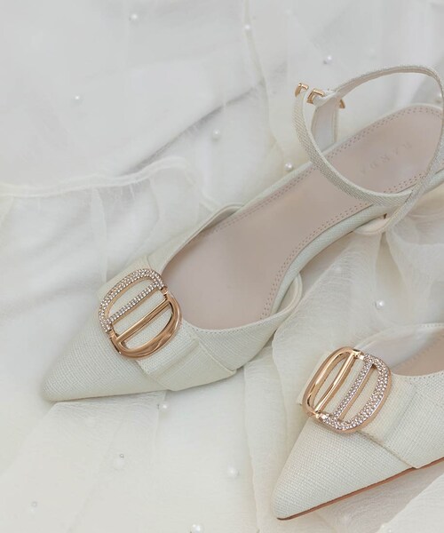 新色/ビジューパーツストラップパンプス