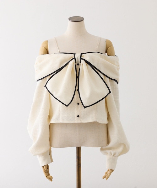 ~NICECLAUP 2026 Spring Collection~肩にあしらったキラキラビジューと、フロントのリボンデザインが目を惹くフェミニンブラウス。顔まわりを華やかに見せてくれるので、1枚で着映えする主役アイテムです♡程よくフィットするシルエットで、甘さがありながらも大人っぽく着られるのがポイント。デイリーからお出かけ、推し活まで幅広く活躍します。■オススメスタイリングミニスカートやプリーツスカートと合わせて王道ガーリーにデニムと合わせて甘さを抑えた大人かわいいコーデもおすすめ※サンプルでの撮影のため、実際のものと仕様や色が異なる場合があります。※室内、室外での撮影のため実際より明るく映っていたり、暗く映っていたりする場合がございます。※品質表示を必ずご確認下さい。【商品のお気に入り登録】完売カラーの再入荷や、ラスト1点のお知らせ、セールの通知を受け取ることができます。【ブランドのお気に入り登録】新作入荷や再入荷情報など、ブランドの情報をいち早くお届けします。ぜひご登録ください♪2026SS0161040090