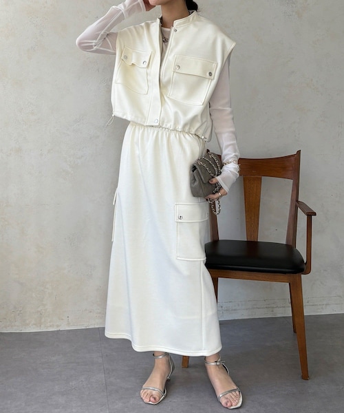 ■2026 SPRING & SUMMER ITEM■WEB限定!迷わずコーデが完成!別々にも使えるベストとスカートのセットアイテムフラップ付きのポケットなど、ワークウェアのディティールを取り入れつつラフ過ぎない上品な素材感で仕上げています。ショート丈のベストとタイトスカートの相性が良く、脚長効果を発揮。スカートのバックにはスリットは施されているのでタイトスカートは歩きにくいと思っている方でも履きやすく、歩きやすいです◎どちらもお家で洗濯機洗いが可能なところも嬉しいポイント!コーデに迷ったらセットで!時短でオシャレが完成し、手抜き感のない洗練された大人カジュアルな印象を引き立ててくれます!- POINT -・WEBでしか買えないアイテム・ショート丈×タイトスカートで脚長効果◎・時短でオシャレが完成!--------------------------------洗濯:洗濯機洗い(弱)透け感:なし裏地:なし伸縮性:なし光沢感:なし--------------------------------【 ♡ をクリックでお得な情報をお知らせいたします 】〈 商品のお気に入り登録 〉お気に入りアイテムのお値下げ・再入荷・在庫ラスト1点など通知を受けることができます。〈 ブランドのお気に入り登録 〉DOUDOUの新商品や再入荷、セール、クーポン配布などお得な情報を受けることができます。--------------------------------------※ 生産の都合上、お届け時期が前後する場合がございます。※ 掲載画像の商品の色味は、 撮影場所や光の当たり具合などにより色味が異なって見える場合がございます。 また、お客様のお使いのPC・スマートフォン等のモニター環境などにより色味が異なって見える場合がございます。予めご了承の上ご注文ください。 ※ 着用、お取り扱いの際は、商品についている品質表示とアテンションタグを必ずご確認下さい。