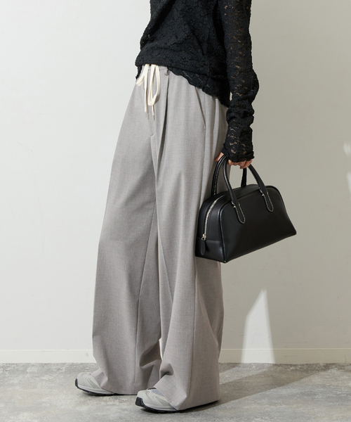JOURNAL STANDARDご好評につき、ソモウライクイージースラックスが追加になりました!※旧品番:25030400959030、25030400959120、25030400959240の追加商品です。※ネイビーの追加です。グレーBは新色です。グレーは旧品番で販売中です。※若干の仕様変更がある場合もございます。※旧品番はすでに店舗に入荷済です。在庫数等は店舗にお問い合わせ下さいませ。生成のスピンドルがポイントになった旬な表情のスラックスパンツ。しなやかで柔らかい薄手のスーツ地のような素材ですっきりとしたきれいな印象のパンツに、タックを入れ、すらっとした程よい太さのワイドパンツ。バックはウエストゴムで楽に穿けるスラックスパンツを叶えました!**********************透け感:なし裏地:なし伸縮性:あり光沢感:なし生地の厚さ:普通**********************【スタッフ着用コメント】《スタッフO》年齢:30代前半/身長:158cm/体型:普通/普段サイズ:M/着用サイズ38サイズ感:ゆったりしています素材感:落ち感を感じるきれいな表情の素材着心地:イージースラックスで楽に穿けます。ウエスト紐がポイントになってカジュアルスタイルに◎※あくまでも個人の感想です。**********************※取り扱いについては、商品についている品質表示でご確認ください。※照明の関係により、実際よりも色味が違って見える場合があります。またパソコン・スマートフォンなどの環境により、若干製品と画像のカラーが異なる場合もございます。※商品の色味は、商品アップ画像をご参照ください。本体:手洗い可能