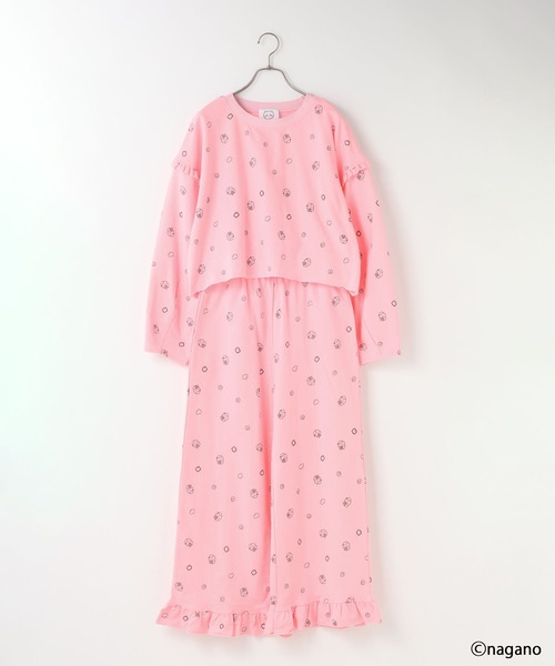 ■デザイン■ちいかわたちの“眠い”表情をモチーフにした、総柄デザインのミニウラケセットアップ。柔らかく軽やかな素材感で、裏側にはわずかに起毛をかけ、肌に触れるたびに心地よさを感じられます。袖口や裾にあしらったフリルが、シンプルなリラックスウェアにさりげないかわいさをプラス。ちいかわの愛らしさと、ローリーズファームの“かわいい”が融合した、心までほぐれるようなルームウェアに仕上げました。キッズとのお揃いアイテムはこちら!ちいかわレギンス 639424