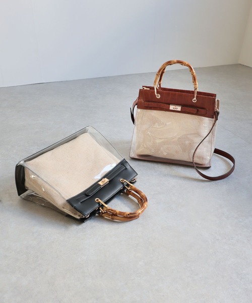 透明感のあるクリア素材に、バンブーハンドルを合わせた上品なデザインバッグ。きれいめスタイルにも自然になじみ、通勤から休日のお出かけまで幅広く活躍します。中身が見えすぎないインバッグ付きで、実用性と安心感を備えた、大人女性にちょうどいい一品です。毎年好評の大人に似合うクリアバッグ【デザイン】・涼やかに、きちんと映える大人のクリアバッグ・シーズンライクなクリア素材と棉麻素材・バンブーハンドルとベルトデザインがきれいめな印象・推しグッズをクリア部分に入れて推し活バッグにも◎【機能】・取り外し、長さ調節可能なショルダーベルト・本体に固定されたメイン収納に見せたくない荷物を収納できます【素材】 ・しっかりとしたビニールとスムース調合成皮革(ブラウンのみ型押し合成皮革を使用)・メイン収納は棉麻生地【スペック】・A4(22×31cm):×・長財布(10×20cm):○・500mlペットボトル(タテ):×・500mlペットボトル(ヨコ):○・総重量:590g・ショルダーストラップ:98~118cm【公式instagram】@mian_official@trysil_official新作アイテムやおすすめ商品の情報を随時UPしております。ぜひチェックしてみてください。【BRAND】MIAN /ミアン自分らしさを大切にする大人の女性に向けて、オンオフ問わず愛用できる上品かつ機能的なアイテムと、トレンドにほんの少しの遊び心をプラスし、ありふれた日常に彩りを与えてくれるバッグや小物を提案しています。【ATTENTION】※画像の商品はサンプルです。実際の商品と色味、仕様、加工、サイズ、素材等が若干異なる場合がございます。・画像の商品は光の照射や角度により、実物と色味が異なる場合がございます。また表示のサイズ感と実物は若干異なる場合もございますので、予めご了承ください。【INFORMATION】・商品のお気に入り登録お気に入りアイテムの値下げ・在庫1点・完売後の再入荷などの通知を随時受け取ることができます。・ブランドのお気に入り登録新商品の発売や再入荷、セール、クーポン配布などお得な情報を受け取ることができます。