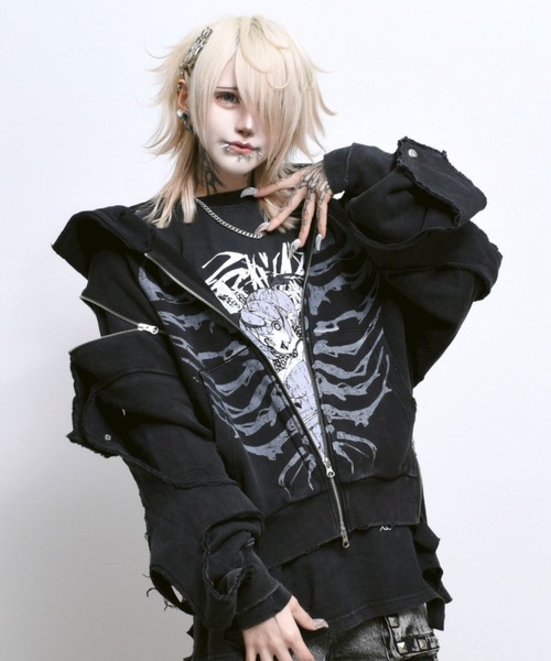『TRAVAS TOKYO/トラバス トーキョー』から、GEDRAJI x TRAVAS TOKYO イラストプリントZIPパーカーが入荷しました。イラストレーターやアイドルとして活動している、GEDRAJI (ゲドラジ) とのコラボレーションジップパーカー。骨のアートワークとグランジ感漂うディティールが特徴的な一着となっております。ユニセックスとしても着用可能です。《ディティール》■肩から裾にかけてデザインファスナー。■袖部分の共地クロスパッチは釦で脱着可能。■端々にダメージ加工。■フロントにプリント&フード口に刺繍のアートワーク。【TRAVAS TOKYO】キュートなデザインの中にどこかサディスティックな一面も垣間見える、独自の世界観を表現するグラフィックアート。 時として相反する要素をミックスしストリートアイテムに落とし込んだ東京発新感覚プロダクト。【お買いものをよりお楽しみいただくには!】▼商品のお気に入り登録ラスト1点の通知、完売カラーの再入荷通知や、セールの通知などを受け取ることができます!▼ブランドのお気に入り登録新作商品や再入荷など、ブランドのお得な情報をいち早いタイミングで受け取ることができます!