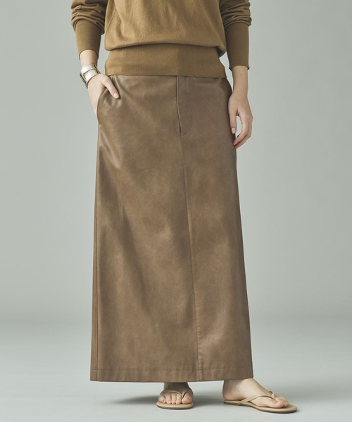 WEB先行予約受付中 2026 SPRING&SUMMER COLLECTION ヴィンテージライクな表情と絶妙なシルエットが魅力のフェイクレザースカート ■デザイン ・ご好評のヴィンテージフェイクレザーシリーズに新色のキャメルが加わり、今シーズンも登場。 ・身体のラインを拾いすぎないストレートシルエットで、タイト過ぎずカジュアルに着こなせるデザイン。 ・レースを少し覗かせたレイヤードトップスとの合わせなど、ハードな素材感と女性らしいアイテムのコントラストを楽しむスタイリングがおすすめ。 ■素材 / お手入れ方法 ・ヴィンテージ風のナチュラルなシワ感と独特の色落ち感が、奥行きのあるニュアンスを演出。 ・リアルな風合いがありながらも、気負わず着用できる素材感。 【Curensology(カレンソロジー)】 旅とは、非日常と日常の間を行ったり来たりしながら、その土地の空気や風景、文化、歴史、そして出会いを、五感のすべてを使って受け止めること。「カレンソロジー(Curensology)」は、そんな旅をイメージした、知的でエレガントな女性のためのワードローブとテキスタイルを提案。バカンスや出張に持っていきたい機能的なアイテムをはじめ、日々の暮らしをアップデートする新しいデザイン、着心地の良いエッセンシャルなものなどを展開しています。 ※サンプルにて撮影をしておりますので、実際の商品とは仕様や加工・サイズ等が若干異なる場合がございます。 ※屋外の光や照明の当たり具合で、実物と色味が異なって見える場合がございます。詳細画像の色味をご確認ください。 なお、商品の色や質感を出来るだけ忠実に再現するよう心掛けておりますが、パソコンなどの環境により、実物と若干異なる場合がございます。 ▼商品のお気に入り登録をおすすめします▼ ♡をクリック!完売カラーの再入荷や、ラスト1点の通知、セールの際の通知を受ける事ができます。ブランドのお気に入り登録もご一緒にお願い致します。