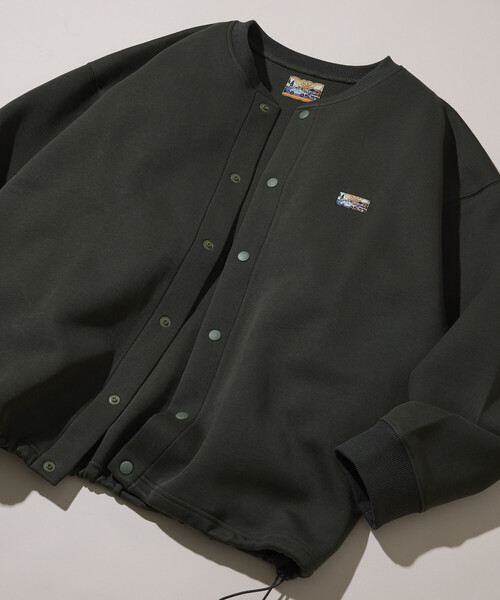 ビッグシルエット ダンボール ワンポイントロゴ スナップボタン スピンドル スウェットカーディガン