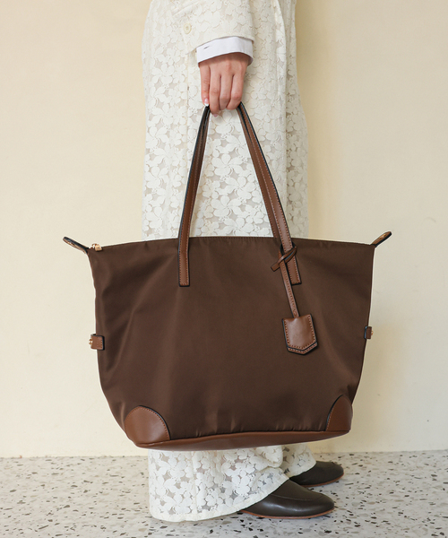 【2026SS】SLOBE IENA大好評につき《ブラウン》の追加生産が決定しました!※旧品番26092913000910の追加商品です。※若干の仕様変更がある場合もございます。※《ベージュA》は品番26092913000910よりお買い求め頂けます。SLOBEオリジナルバッグに新型が登場!カジュアル過ぎず綺麗目にも持てるトートバッグ。キャリーケースの上にのせても落ちない仕様や、バッグのシルエットを変更できるスナップボタン付きなど嬉しい機能も。気兼ねなく使いやすい素材とマチがしっかりとあるデザインで、通勤バッグや旅行バッグ、マザーズバッグとしてもオススメです。A4サイズのものや16インチのノートパソコンも収納可能。-SLOBEオリジナルGOODSライン-トレンド感がありながらもどこか女心をくすぐるデザインがコンセプト。フェミニンで今年らしいおしゃれを提案します。こちらの商品は、SLOBE IENAでの取り扱いになります。直接店舗へお問い合わせの際はSLOBE IENA店舗へお願い致します。※照明の関係により、実際よりも色味が違って見える場合があります。またパソコン・スマートフォンなどの環境により、若干製品と画像のカラーが異なる場合もございます※商品の色味は、商品アップ画像をご参照ください。