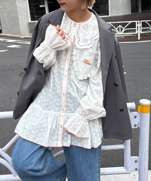 ◇いろんな気分に合わせて服を選ぶ女の子のためのシリーズ【HELLO.SANFRANCISCO】◇ 春コーデの推し♡ レースフリルチュニック ■デザイン 胸元のハートのピンクがガーリー度アップ♥ 1枚でミニワンピとしても、パンツとレイヤードしても可愛い✨ フリル&配色ステッチで、ハロサンムード満点なレースチュニックです。 ■スタイリング ブラウスのデザインを活かして、シンプルなボトムスとの相性が抜群です。 デニムやスカートと合わせてカジュアルに着こなすのはもちろん、キレイめなパンツと合わせれば、程よく抜け感のある大人可愛いコーディネートが完成します。 ブラウスのデザインに合わせて、アクセサリーやバッグなどの小物で遊び心をプラスするのもおすすめです。 前開きなので、羽織としても着用いただけます。 ■お手入れ方法 洗濯:30℃を限度とし、洗濯機で非常に弱い洗濯ができる アイロン:底面温度110℃を限度にアイロン仕上げができる タンブル乾燥:不可 ・・・・・・・・・・・・・・・・・・・・・・ 透け感:あり 裏地:なし 伸縮性:なし 光沢感:なし 生地の厚さ:薄手 ・・・・・・・・・・・・・・・・・・・・・・ 【HELLO.SANFRANCISCO/ハローサンフランシスコ】 西海岸を代表するサンフランシスコ。年中暖かく、穏やかでフレンドリーな都市。 少し懐かしさを感じる柄やアイテムを今の女の子に向けて提案。 メンズライクな素材を女の子が着るシルエットに落とし込んだアイテムなどトレンドに敏感でいろんな気分に合わせて服を選ぶ女の子のためのシリーズ。 ▼気になる商品をお気に入り登録 ハートをクリックして《お気に入り登録》がオススメです! ※画像の商品はサンプルを使用しております。実際の商品と若干の仕様が変更になる場合がございますので、予めご了承の上ご注文くださいますようお願いいたします ※屋外の光や照明の当たり具合で、実際の商品の色味とカラー別画像の色味に若干の違いが発生する場合がございます。詳細画像と併せてご確認の上、ご注文いただきますようお願い致します。 ※独自のタイムセールなどの施策により、実店舗と価格差が発生する場合がございます。 ※実際の店舗在庫につきましては、各店舗に直接お問い合わせください。