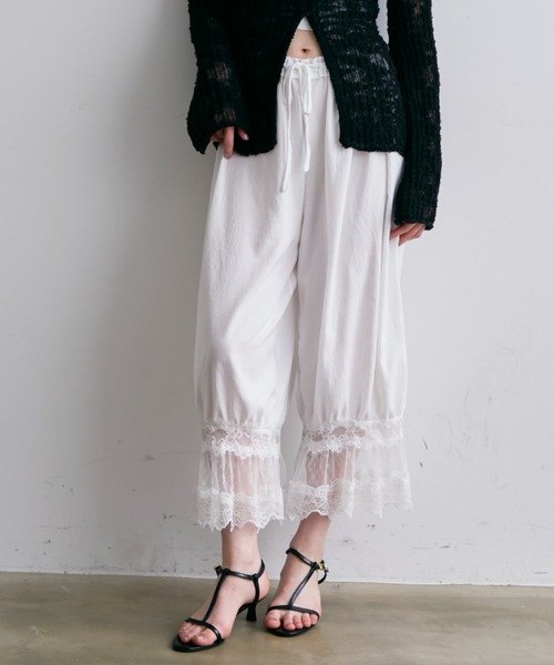 --- Trish NEW ARRIVAL TREND ITEM! --- 【2026 SS COLLECTION】 裾に繊細なレース素材を贅沢に使用した、存在感のあるバルーンシルエットパンツ。 軽やかな透け感が女性らしさを引き立てつつ、ドロスト仕様でウエストまわりの調整がしやすく、リラックスした穿き心地を叶えます。裾に向かってふんわりと丸みを帯びたシルエットが、コーデに立体感と華やぎをプラス。 Tシャツ合わせでカジュアルダウンしても、ブラウスと合わせて上品にまとめてもサマになる万能アイテムです。シンプルなトップスを合わせるだけでスタイリングが完成する、主役級のレースパンツ。 ●透け感:WHT少しあり ●伸縮性:なし ●光沢:なし ●生地の厚さ:薄め --- ATTENTION --- ※撮影場所やお使いのモニター環境により若干お色味が異なる場合がございます。ご了承下さい。 商品の色味は、商品拡大画像をご参照下さい。 ※製品によっては染料の特性上、湿った状態や汗をかいた状態での長時間の放置、または摩擦により、 他のものへ色移りする恐れがありますので、着用時にはご注意下さい。 ※風通しがよく、湿気の少ない日の当たらない場所で保管して下さい。事によりにおいは軽減されます。 ※袋梱包の為、染料による特有の匂いが抜けきれず、匂いがする場合がございますが不良品にはあたりません。 ※本製品は生産過程におきまして色味、サイズ感等若干の誤差が出る場合がございます。予めご了承くださいませ。 上記注意点での返品、交換はお断りします。ご了承の上お買い求めくださいませ。 --- INFORMATION --- 〈商品のお気に入り登録〉 カートの右のハートをクリック!完売カラーの再入荷通知を受け取ることができます。 〈ブランドのお気に入り登録〉 ブランド名をクリック!新商品や再入荷の通知を受け取ることができます。 〈ブランド公式SNS〉 Instagram: @trish.tokyo ZOZOTOWNに掲載していない入荷情報やお得な情報なども随時更新中◎ 是非チェックしてみてください。 ※他のキャンペーンにより、期間中に価格が変動する場合があります。 SALEは予告なく終了させていただく場合もあります。 ※他のキャンペーンにより、期間中に価格が変動する場合があります。 ※セールは予告なく終了させていただく場合もあります。