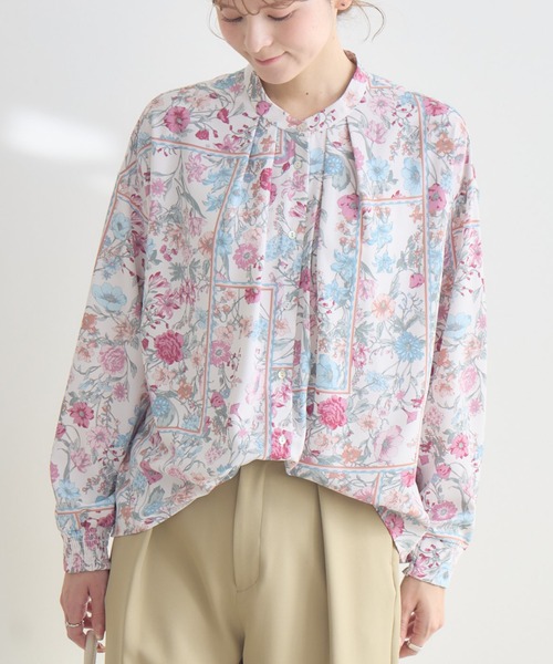 【KATHARINE ROSSオリジナル】2019年秋冬に人気だったアロマプリント柄が、待望のリバイバルとして再登場!プリントには、全部で14種類の植物モチーフを繊細に描写。11月に発売したオリジナルリップスティックのアロマ原料であるスイートオレンジ・ゼラニウム・ローズに加え、春の花々も取り入れた華やかなデザインです。[素材]・素材には、さらりとした肌触りが魅力のポリエステルツイルを使用。・軽やかで着心地の良い仕上がりになっています。[デザイン]・首元をすっきり見せるバンドカラーの長袖デザイン。・袖下にシャーリングを施し、袖丈の調整がしやすい仕様。・裾が“ブラウジング風”に見えるボタン仕様で、インしなくてもバランス良く着られます。[スタイリング]・ブラウジング風の裾を活かし、シンプルなパンツと合わせてすっきり見せる着こなしに。・同デザインのスカート(品番:44667)と合わせて、華やかさと統一感のある上品なセットアップスタイルに。■光沢感:なし■透け感:なし■伸縮性:なし■生地の厚さ:薄手[リバイバルアロマプリントシリーズ商品]スカート(品番:44667)※照明や光の当たり具合で色味が違って見える場合があります。※システムの都合上、店舗より入荷が遅れる場合がございます。【お買い物をよりお楽しみいただくために】・商品のお気に入り登録をおすすめします!♡マーククリックで登録できます。完売カラーの再入荷や、ラスト1点になったときの通知、セールの際に通知などお得な情報を受けることができます。・ブランドのお気に入り登録もご一緒にお願いいたします!新商品や再入荷、などいち早くブランドの最新情報をお届けします。