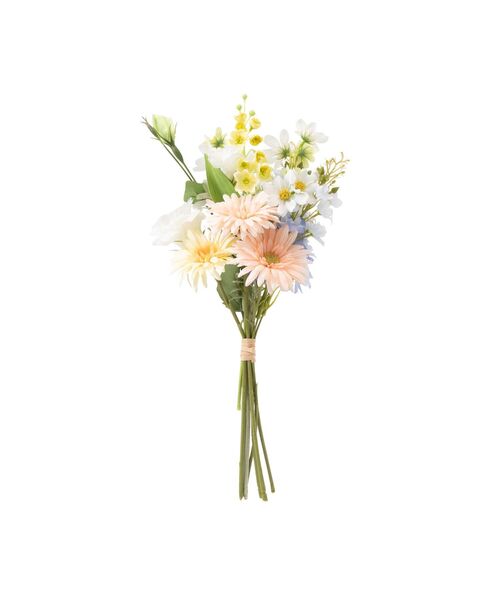 そのまま飾れてお手入れ要らずで綺麗なお花をずっと楽しめる、アートフラワーのブーケです。 淡い色のガーベラがナチュラルな印象のブーケです。 ホワイトやパステルカラーのフラワーベースとのコーディネートがオススメです。 【注意事項】 ■室内装飾用です。 ■直射日光のあたる場所での使用はお避けください。 ■商品の特性上、毛羽落ちしやすくなっていますので、過度に触れないようご注意ください。 ■トゲのような突起がありますので、お取扱いの際はご注意ください。 ■装飾上、強く触れるとはがれやすいパーツがありますのでご注意ください。 ■お子様やペットの手の届かない場所でご使用ください。 ■ハンドメイドのため、色や形状に個体差があります。 ■原産国:中国