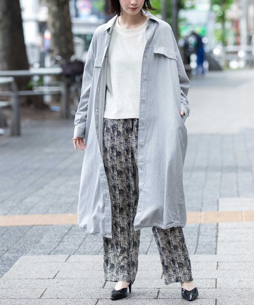 □ Munich 2026 pre spring collection □◆裾のストレッチコード使いでアレンジのできる羽織にも使えるデニムシャツドレス◆<MATERIAL>タテヨコ20/-使いの2/1綾、6ozデニムです。平織よりもソフトな風合いに上がる傾向の強い綾デニムの中でもこちらは洗い上りが堅めの風合いに寄る、目の詰まった素材なので柔軟仕上げをプラスしてソフトな風合いに仕上げました。ライトな6ozクラスの中では度詰め気味でボトムやワンピース使いにも適したしっかり感があります。ブラックとインディゴはそれぞれ硫化染料とインディゴを使用した経糸ロープ染色のオーソドックスなデニム、ライトグレーはわたの状態で染めたTOP糸を経糸に使用しています。<DESING> CPOジャケットをアレンジしたシャツ型の前あきで羽織にも使えるワンピースです。すっきりとした縦長のフォルムで、少し前後の巾に差をつけた程よいゆとりのあるボクシーなシルエット。ワークっぽい雰囲気とステッチワークを利かせたデニム素材で、全体的にカジュアル感がありますが、裾にストレッチコードを通し、ブラウジングするアレンジができるので、女性らしいふんわりとした雰囲気にもこなせます。長すぎずパンツ合わせしてもボトムの見え具合が程よく、特にすっきり目のワイドパンツと好相性です。<COLOR>■ブラック:マットブラックでモード感と引き締め効果を兼ね備えたカラー■ライトグレー:やや青みを含んだクールローンのライトグレーで清潔感と柔らかさを両立したカラー■インディゴブルー:深みのあるインディゴブルーでクラシックで知的な印象のカラー※光のあたり具合いやパソコンなどのモニター環境によって実際の色味と異なって見える場合がございますので、予めご了承ください。※着用商品はサンプルです。サイズ等の仕様に若干の変更がある場合がございますので、予めご了承ください。※お取扱いについては、商品についております品質表示、アテンションタグにてご確認ください。洗濯:洗濯機洗い可.............................≪INFORMATION ≫............................▼商品のお気に入り登録▼『♡』マークを押してお気に入り登録して頂いた商品は、セール開催の通知やクーポン発行などのキャンペーンなど、お得な情報をいち早く受けとる事が出来ますので、ぜひご登録ください。