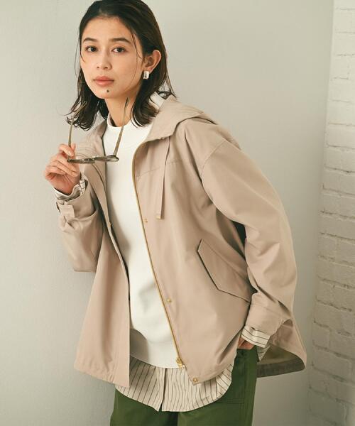 【デザイン】 キレイめカジュアルに着こなせるマウンテンパーカー。 アームホールや袖にほどよいゆとりを持たせ、トップスを選ばずに羽織れるデザインに仕上げました。 コットンポリエステル生地のナチュラルな風合いと適度なハリ感が、立体的で美しいシルエットを実現。 また、フードのパターンにもこだわり、開けても閉めてもどちらでもサマになるデザインです。 胸元には切り替えデザインをプラス。 袖口のドットボタンでフィット感を調整でき、裾のドロスト仕様によってシルエットの変化を楽しむことができます。 【素材感】 ポリエステル、コットンの綺麗め軽量素材。 コットンの持つナチュラルさとポリエステルの繊細な光沢感、適度なハリ感が特徴の素材です。 はっ水(水をはじきやすい)機能付き。 【着こなしポイント】 スカートやボトム、様々なアイテムのアウターとして便利にお使いいただけます。 【仕様】 ・ポケット数:横×2 ・裏地あり ※照明の関係により、実際よりも色味が違って見える場合があります。また、パソコン・スマートフォンなどの環境により、若干製品と画像のカラーが異なる場合もございます。 モデル情報:身長163cm B80 W59 H82 着用サイズ:02(M) 店舗へのお問い合わせ商品番号:153-45206 ●製品寸法: 00(XS):着丈68cm B102cm 袖丈47cm 肩幅52cm 01(S):着丈70cm B108cm 袖丈51cm 肩幅55cm 02(M):着丈71cm B112cm 袖丈51cm 肩幅56cm 03(L):着丈72cm B115cm 袖丈52cm 肩幅58cm 04(2LT):着丈73cm B118cm 袖丈53cm 肩幅59cm 42(2L):着丈73cm B122cm 袖丈50cm 肩幅61cm 44(3L):着丈74cm B126cm 袖丈50cm 肩幅62cm 46(4L):着丈75cm B130cm 袖丈50cm 肩幅62cm 48(5L):着丈76cm B134cm 袖丈50cm 肩幅63cm 50(6L):着丈77cm B138cm 袖丈50cm 肩幅64cm 備考:重量:約425g(サンプルサイズ)