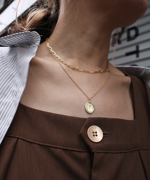 エッジの効いたチェーンと、細く華奢なチェーンの二連ネックレス。強さと繊細さがMIXされた計算されたデザインは、首元をスッキリ見せ、コーディネートを格上げしてくれます。