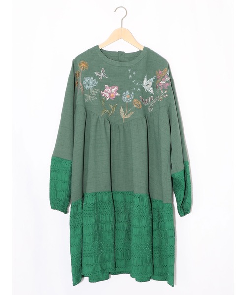 + iS ScoLar商品 +まるでネックレスのように胸元を飾る、華やかなお花柄刺繍が魅力のチュニックシャツワンピース。布帛生地~くしゅっとした凹凸のあるシャーリング生地の切り替えで、テクスチャーに深みと遊び心を加えた大人ガーリーな仕上がりとなっております。カラーは刺繍がよく映えて大人っぽく着られる09(ブラック)・カジュアルに着こなせる爽やか25(ブルー)・スタイリングの差し色にも使える38(グリーン)の3色展開。ふわっと広がるキレイなシルエットで、すっきりめのパンツなどと合わせたボリュームを活かす着こなしがオススメ。普段のちょっとしたお出かけから、少しフォーマルなシーンまで幅広く活躍してくれるアイテムです。■スタイリングitemはコチラ⇒【561203】●model:Mayu 169cm/66inch●model着用:09(ブラック)(着用商品はサンプルの為、実際のデザインと変更がある場合がございます)ーーーーー裏地:なし透け感:やや透け感あり生地の厚さ:普通生地感:やわらかめ伸縮性:(布帛部分)なし・(シャーリング部分)ややありポケット:なしーーーーー※ 刺繍使用取り扱いのご注意:※この製品は摩擦や水濡れにより色落ちにすることがありますのでご注意ください。※この製品は生地独特な風合いを出すために、製品加工してあります。(製品は1点、1点多少表情が違います)※この商品は糸及び編組織の性質上、引っ掛け・引っ掛かりやすい為、着脱時や取り扱いにご注意下さい。※この商品は刺繍を使用している為、糸及び編組織の性質上、引っ掛け・引っ掛かりやすい為、着脱時や取り扱いにご注意下さい。※この製品はレーヨン素材を使用しており、縮みやすいのでお洗濯の際にはご注意ください。