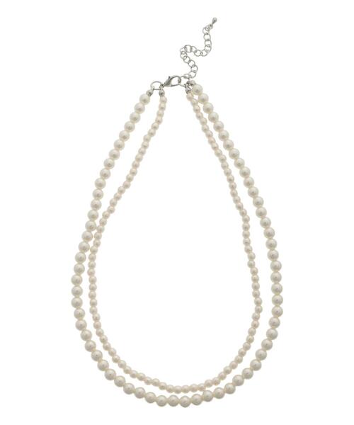サイズの異なるパール調が重ねられた2連ネックレス。1つで重ね付けしたようなスタイリングを楽しむことができ、上品なムードを演出します。お好みのサイズで着用できるアジャスター付き。ワンピースやドレスなど、ちょっとしたお呼ばれシーンにも活躍してくれます。【その他採寸】F たて:[パール大]0.6cm [パール小]0. よこ:[パール大]0.6cm [パール小]0. 全長:46-49cm(アジャスター6.5cm)