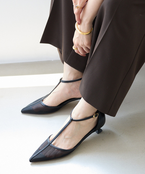 人気のシアーパンプスに春スタイルにぴったりなナチュラルカラーが登場! 甲にかかる華奢なTストラップとシアーなチュールの透け感が女性らしいパンプス。 パンプス見えながら3.5cmヒールで履きやすい高さなのもうれしいポイント。 デニムなどのあえてカジュアルなスタイリングに合わせて、足元にキレイめアイテムを持ってくるのが今年らしくて◎ ********************** 【スタッフ着用コメント】 《スタッフT》 普段サイズ:23.5/着用サイズ:23.5 サイズ感: 23.5でぴったり。 履き心地:いつものサイズを素足で履いて 丁度よいサイズ感でした。甲の高い所にストラップ があるので、踵が浮いたりする心配もなかったです。 ポインテッドトウですがシアーのアッパー素材なので 窮屈感もなくはけました。 ********************** *サイズによりヒールの高さが多少前後することが御座います。予めご了承ください。 *照明の関係により、実際よりも色味が違って見える場合があります。 またパソコン・スマートフォンなどの環境により、若干製品と画像のカラーが異なる場合もございます。 *商品の色味は、商品アップ画像をご参照ください。