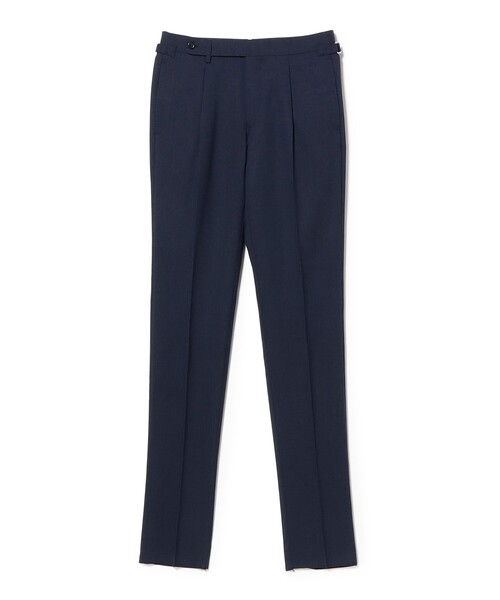 素材が映す、静かな存在感国産の上質なウール生地(目付298g/m)を使用した、1プリーツのサイドアジャスタースラックス。程よいウエイトのウール生地は三子撚りにすることで、滑らかなタッチとともにシャリ感、清涼感を備えた風合いに。さらに三子撚り糸には3色の異なるネイビーを用い、奥行きのある深いネイビーカラーに仕上げています。ジャケットを合わせたビジネススタイルはもちろん、ポロシャツやニットとのコーディネートもおすすめです。仕立ては日本を代表するファクトリー〈RING JACKET(リングヂャケット)〉が担当。美しいシルエットと立体的なパターンによる、快適な穿き心地が魅力です。仕様について:1アウトプリーツ/サイドアジャスター■ケア方法ドライクリーニング(詳細は商品についている洗濯表示タグをご覧ください。)※裾は未処理の状態でお届けとなります。アウトレット店舗を除く、〈BEAMS F〉レーベルを取り扱っているビームス店舗で裾上げ修理が可能です(別途修理代が発生します)。修理代につきましては、お持ち込みいただく店舗までお問い合わせください。オンラインショップのご購入品を店舗へお持込の際は、オンライン注文履歴から「電子納品書」をダウンロードしてご提示ください。【お気に入り機能を使ってお得な情報をGET!】●商品のお気に入り登録(ハートマークをクリック) ・残り1点、再入荷、お得なセールやクーポンなどの通知を受け取れます。・お気に入りした商品は一覧で閲覧でき、あとで見返すのに便利です。●ショップ・ブランドのお気に入り登録・新商品や再入荷、クーポン配布などいち早くブランドのお得な情報を受け取ることができます。BEAMS F/ビームスF1978年、"FUTURE"のFをレーベル名に掲げて始まったレーベル。アメリカンカジュアルウェアの「BEAMS」から、より幅広い世界を展開すべく ヨーロッパのクラシックをベースに、常に現代的な解釈を加えたスタンダードを提案しています。着心地と作りの良さを追求した重衣料と、大人のためのエレガントなカジュアルウェアの品揃えで構成されています。