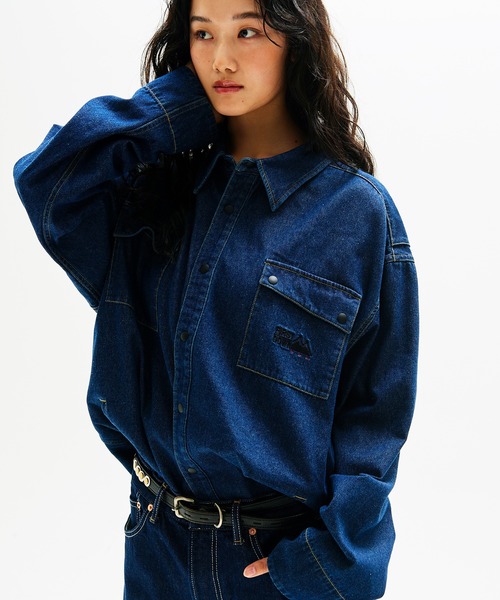 【FIRST DOWN USA】デニム シャツ ブルゾン | DENIM SHIRT BL 【デザイン】 ワークウェアのタフなディテールと、洗練された都会的なシルエットを融合したデニムシャツジャケット。フロントとサイドに立体感のあるフラップ&スラッシュポケットを配置し、実用性とデザイン性を両立。背中にはアクションプリーツを取り入れ、動きやすさを確保しながら、ラフすぎない印象に。裾はわずかにラウンドさせたスリット入りで、レイヤードした際のシルエットにも配慮しています。配色ステッチとオリジナル刺繍ロゴが、無骨さの中にブランドらしい存在感を添えています。 【素材】 表地には8.2ozのライトオンスデニムを使用。程よい厚みと柔らかさがあり、軽やかな着心地で春先から秋口まで幅広く活躍します。 【コーディネート】 シンプルなカットソーの上から軽く羽織るだけでスタイリングが決まる主役級シャツジャケット。ルーズフィットのパンツやカーゴ、ミリタリーパンツと合わせて、無骨なアメカジスタイルを構築するのはもちろん、スラックスと合わせたクリーンな着こなしもおすすめ。 【チャート】 シルエット:スタンダードフィット ストレッチ性:あり ※自社ブランド比較 【SIZEについて】 FIRST DOWN USAについては全体的にやや大きめのサイズスペックになっております。チャート欄のシルエットに関しては、自社比較にて明記しております。 【品番】 F191011 【FIRST DOWN/ファーストダウン】 地下鉄の車内をタグやグラフィティが埋め尽くし、アメリカ有数の犯罪多発都市として不穏なムードと緊張感が立ち込めていた80年代のニューヨーク。FIRST DOWNはかつてのこの地で誕生し成長を遂げたブランドです。決して良好とは言えない環境下でも多くの人々が強いエネルギーを持ち、音楽やストリートカルチャーの隆盛を支え、アートシーンにも大きなムーブメントがたくさん生まれた時代。彼らが東海岸の極寒の冬を凌ぐのに、羽毛がぎっしりと詰まったFIRST DOWNのアウターは最適なギアだったのです。