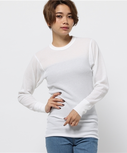 世界で一番有名なサーマルアンダーウェアのブランド「J.E.モーガン ニッティング ミルズ」。1945年に、ペンシルバニア州で小さな縫製工場としてスタートしたのですが、環状のサーマル生地を発明し、それを利用したヘビーウェイトのアンダーウエアが大ヒット。その後も、積極的に研究に取り組み数々の特許を取得、業界のリーディングカンパニーへと成長していったのです。また、全ての工程を自社工場で行うその製品作りにも、絶大な信頼がおかれています。ワッフル素材で伸縮性もあり、柔らかで肌触りも抜群。シンプルなクルーネックデザインの長袖タイプ。もちろんアンダーウェアとしても、トップスとしても着用OKです!綿ポリエステル混紡素材で速乾性に優れています。