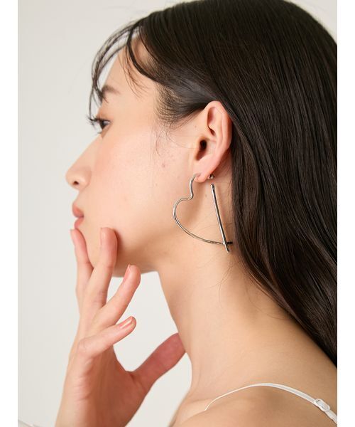 【オープンハートのモチーフピアスに大人の遊び心を託して】【Design/Styling】ハートをかたどったキャッチーなピアスがトレンドライク。大人っぽさをキープするために、細長いシルエットや表面に歪みのある高級感あふれるテクスチャーで、洗練されたバランスに仕上げました。やや大ぶりサイズのためシンプルでありながらも適度な存在感を発揮。同時に小顔効果も狙えます。シャツやTシャツなどさまざまなトップスと好相性。色展開は、都会的なSLVと華やかなGLDの2色でご用意しました。※照明の関係により、実際よりも色味が違って見える場合があります。またパソコン・スマートフォンなどの環境により、若干製品と画像のカラーが異なる場合もございます。予めご了承ください。商品の色味は、商品単品画像をご参照下さい。 ※商品画像はサンプルのため、色味やサイズ等の仕様に変更がある場合がございますので、予めご了承ください。