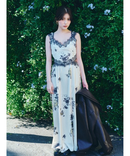 【繊細なレーステープとヴィンテージライクな華やかなフローラルプリントが優雅に交わるロマンティックなサテンキャミワンピース】【Design/Styling】ヴィンテージライクなフローラルプリントと華やかで繊細なテープレースの掛け合わせで春気分を加速させるプリントキャミワンピースが届きました。とろみのあるヴィンテージライクサテン生地で、裾に向かって自然に流れるスマートなフレアラインを描きます。V開きの胸元や肩紐、ウエスト高めの位置には華奢なレースをたっぷりとあしらい華やぎをプラス。ウエスト脇部分にはカットを入れ、さりげない肌見せで抜け感を出しました。サイドの肌見せの空き具合はカット下の華奢なリボンストラップで微調節も可能。春先にはカーディガンやジャケットを羽織ったレイヤードスタイルがおすすめ。ロングスパンでご着用いただけるアイテムです。背中側にはバスト位置からウエスト部分にかけてゴムシャーリングをたっぷりといれてフィット感を出し、着心地良く仕上げています。背中側のファスナーで着脱いただけます。ストラップはアジャスター付きなので調節いただけます。裏地付きです。【Fabric】軽やかでややシボ感のあるサテン生地を使用しヴィンテージライクに仕上げました。アイボリー、ブラック、イエローの3色展開です。透け感;なし裏地;あり伸縮性;なし光沢感;ややあり生地の厚さ;やや薄手【おすすめ骨格タイプ】■骨格ストレート■骨格ウェーブ■骨格ナチュラル※照明の関係により、実際よりも色味が違って見える場合があります。またパソコン・スマートフォンなどの環境により、若干製品と画像のカラーが異なる場合もございます。予めご了承ください。商品の色味は、商品単品画像をご参照下さい。 ※商品画像はサンプルのため、色味やサイズ等の仕様に変更がある場合がございますので、予めご了承ください。