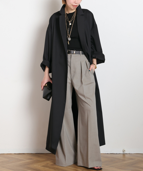 優雅なシルエットが美しい、軽い着心地のエフォートレスコート。クリアな表面感と程良い張り感が特徴の素材を使用し、しなやかな丸みのあるシルエットを叶えました。中に着込める余裕がありつつもスッキリと見え、シワになりづらいのも嬉しいポイントです。幅広いスタイリングにマッチしつつも、こなれた雰囲気をまとえるスプリングアウターです。※照明の関係により、実際よりも色味が違って見える場合があります。またパソコン・スマートフォンなどの環境により、若干製品と画像のカラーが異なる場合もございます。※商品の色味は、商品アップ画像をご参照ください。モデルサイズ:H163 着用サイズ:38本体:ドライクリーニング