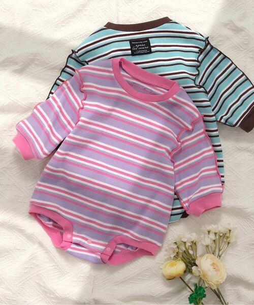 apres les cours(アプレレクール)のカバーオール・ロンパース「【リンク】WEB限定 マルチボーダーメロウボディースーツ」は、やさしいニュアンスのナチュラルなデザイン。ベビーギフトや出産祝いの主役にも♪【取り扱い表示】40℃を上限に洗濯機で洗濯、デリケートアイテムモード、ネット使用、漂白剤を使用禁止、色物は同系の色と一緒に、洗濯後直ちに取出し、タンブル乾燥不可、日陰で吊り干し、低温でアイロン、商業ドライクリーニング不可※商品により多少の誤差が生じる事がございます。あらかじめご了承下さい。※ご使用のパソコンやブラウザの環境により、実際の色とは多少異なる場合がございます。※モデル着用写真についてはイメージの為、実際の商品とカラーや仕様が異なる場合がございますので、商品画像をご覧ください。【 apres les cours -アプレレクール- 】「キオク いろどる、こどもふく。」大切なキオクを彩る、お気に入りの一枚。「アプレ レ クール」は独自の色づかいやテキスタイルで日々をトクベツに過ごせるそんな「一枚」をお届けします。▼気になる商品をお気に入り登録ハートマークをクリックして『お気に入り登録』がオススメです!商品のお気に入り登録をすると、[再入荷][残り1点][セール情報]を受け取れます。また、『F.O.Online Store』を、お気に入り登録すると[新作アイテム][再入荷]の情報をいち早く受け取れます♪