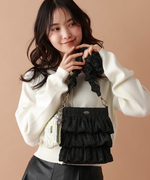 アクセ感覚で使いやすいミニショルダーレトロなプリント素材とフリルディティールが可愛いショルダーバッグ。 スマホ、ミニ財布、ハンカチ、リップ、鍵など、必要最低限の荷物がすっきりと入るアイテムです。取り外し可能なショルダーストラップは、他のバッグやスマホケースに付け替えても楽しめます!ボリューム感のあるシルエットが目を引き、シンプルコーデに合わせるだけでもアクセントに♪ちょっとしたお出かけからオケージョンまで、幅広いシーンで活躍します。【tiny tiny(ティニーティニー)】Feminine convenience standスタイリストは、じぶんがいい。tiny tinyはフェミニンテイストの服飾雑貨が揃うセルフスタイリストのためのコンビニスタンド。コンパクトだけどたくさんの「好き」が詰まった空間で、立ち寄るといつも新しい「自分」のヒントがもらえる。タイニーな「好き」の積み重ねが毎日をハッピーに変えてくれる。たったひとりのわたしらしさを作ってくれる。今日も tiny tinyに寄って行きませんか?※ご注文いただいた予約商品のお届け時期の確認は、注文履歴ページより行えます。※サンプルにて撮影をしておりますので、実際の商品とは仕様や加工・サイズ等が若干異なる場合がございます。※屋外の光や照明の当たり具合で、実物と色味が異なって見える場合がございます。詳細画像の色味をご確認ください。 なお、商品の色や質感を出来るだけ忠実に再現するよう心掛けておりますが、パソコンなどの環境により、実物と若干異なる場合がございます。※写真を許可無くコピー・転用することは固くお断りします。