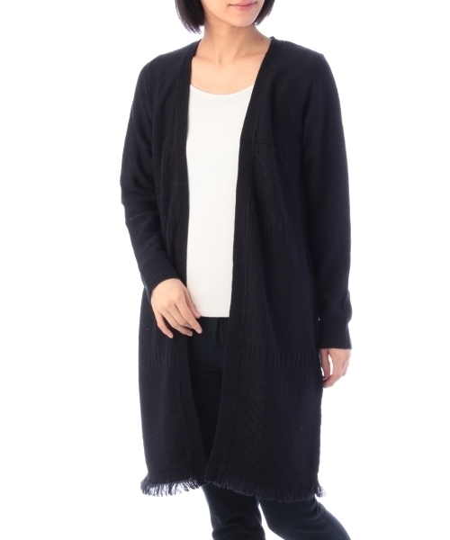 フリンジ使いのフォークロアテイストがトレンド風なロングカーディガン。編み地柄が特徴的で1枚で今年らしくなるアイテム。パンツとのスタイリングがオススメです。 モデル情報:身長168cm B78W60H86 着用サイズ:02(M) 店舗へのお問い合わせ商品番号:741-37004 主に秋に着用いただける商品です。 サイズスペック●製品寸法: 02(M):着丈90 Bフリー 袖丈55 肩幅35 03(L):着丈92 Bフリー 袖丈56 肩幅36