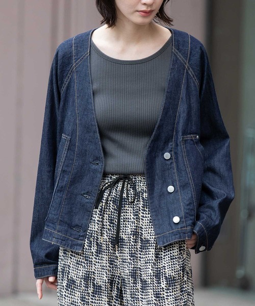 □ Munich 2026 pre spring collection □◆Gジャンとシャツの中間的なスキマをねらったインにも使える万能羽織り◆<MATERIAL>リヨセル混紡のデニムです。経緯とも綿/リヨセルの混紡糸を使用しているためソフトな風合いで、タテはムラ糸なので混紡糸でもきちんとデニムらしい表情になってます。前回使用時は展開のなかったブラックデニムが増えて今回はブラックとインディゴブルーのワンウォッシュで2色展開にしました。濃色同士なのでステッチ色(ブラックが白系ステッチ)に差をつけました。<DESING> ヴィンテージのエンジニアジャケットをモチーフに、コンパクトなレングスなど現代的なアレンジを加えた羽織アイテムです。シャツアウター的な軽めの羽織として使えるほかに、B64などのアウターのインにジレっぽく差し込んだりもできるのでデリバリー即で使えます。<COLOR>■ブラック:深みのあるブラックデニムに、ホワイトステッチが映えるこなれ感のあるカラー■インディゴブルー:クラシックなインディゴブルーに、茶ステッチがアクセントとして効いた王道デニムカラー※光のあたり具合いやパソコンなどのモニター環境によって実際の色味と異なって見える場合がございますので、予めご了承ください。※着用商品はサンプルです。サイズ等の仕様に若干の変更がある場合がございますので、予めご了承ください。※お取扱いについては、商品についております品質表示、アテンションタグにてご確認ください。洗濯:洗濯機洗い可.............................≪INFORMATION ≫............................▼商品のお気に入り登録▼『♡』マークを押してお気に入り登録して頂いた商品は、セール開催の通知やクーポン発行などのキャンペーンなど、お得な情報をいち早く受けとる事が出来ますので、ぜひご登録ください。