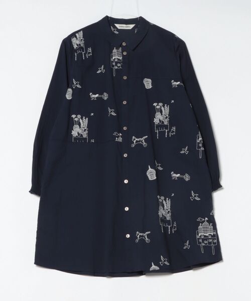 画家・イラストレーター マツモトヨーコさんとのコラボシリーズ。 単色でステッチのような振り方の総柄刺繍を施したチュニックブラウス。 マツモトさんの作品から動物やお花などをピックアップして、可愛らしい総柄に仕上げました。 アシンメトリーな切替やカーブヨーク、衿の切り替えなど、遊び心あるディテールをふんだんに取り入れた1着です。 『大切にしていること』 マツモトヨーコ Yoko Matsumoto 画家・イラストレーター 川口俊和著「コーヒーが冷めないうちに」シリーズの装画などのイラスト多数。 東京、大阪、京都他で毎年個展開催しています。 主に穏やかで温かい空気感のある室内の情景を描いています。 お手入れ:手洗い 店舗へお問い合わせの際は、下記の品番をお申し付け下さい。 [品番:34150461]