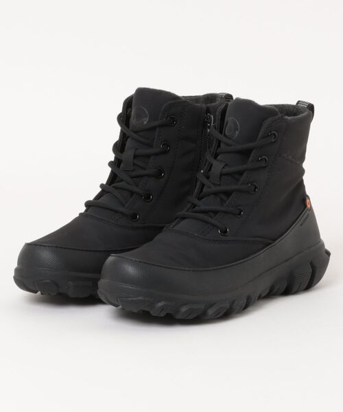 CEDAR MID SHOE LACE防水のレースアップブーツ(ジップアップ付き)靴底はBOGS ICE GRIP素材により、冬の路面で防滑性を発揮します。かかとのテープは反射効果があり暗い道でも安心。DuraFreshの天然バイオテクノロジーが抗菌・防臭効果を発揮します。BOGS Max-Wick が汗を蒸発させて足をドライに保ちます。新素材のバイオベースのフットベッドは、トウモロコシや大豆などの非食用植物から植物油を精製しています。よって石油の使用量を最大 25~32% まで効果的に削減。【BOGS】ボグス「BOGS(ボグス)」は海外セレブも愛用するアメリカのブーツブランド。防水・防滑・履き心地など、高い性能を持ち、全天候をカバーするラバーブーツとして知られています。「BOGS」は2002年にアメリカ・オレゴン州ポーランドで創業。日本と同じように四季があり、大自然の厳しい環境で農業や牧畜業が営まれ、そのハードワーカーが求める機能性と快適性を叶えるべく誕生しました。ラバー+ネオテックのコンビネーションブーツを世界で初めて開発。裏は足から蒸散される湿気を吸着し拡散を補助する特殊素材(Max-wick)を使用し、肌に触れるところは柔らかく、暖かい保温性が高い毛で構成されています。性能の高さが人気を呼び、アメリカではファーマーや牧場主だけではなく、登山やレインブーツとしても利用されるようになりました。