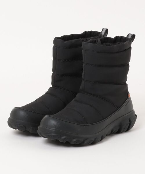 CEDAR QUILTキルティング加工が施されたアッパーが特徴的な防水防寒ブーツ。ソールには滑りやすい路面に優れたグリップ力を発揮するボグスアイスグリップを採用。内側にはファスナーが付いているので脱着しやすい。キルティング部分には保温性に優れた断熱材を採用し、肌に触れるライニングには肌触りの優しいフリースを採用しました。かかとのテープは反射効果があり暗い道でも安心です。【機能詳細】・DuraFresh(デュラフレッシュ):天然バイオテクノロジーによる抗菌・防臭効果を発揮。・BOGS Max-Wick(ボグス マックスウィック):汗を蒸発させて足をドライに保ちます。・WATERPROOF(ウォータープルーフ):防水仕様。雨や雪でも安心の防水仕様なので水たまりの多い悪路や、雪解け時に起こりやすい浸水の悩みも感じずに安心して履くことができます。・BOGS Ice Grip(ボグスアイスグリップ):考え抜かれた材質で成形されたグリップ性の高いソールは、滑りにくく安全な歩行を提供します。【BOGS】ボグス「BOGS(ボグス)」は海外セレブも愛用するアメリカのブーツブランド。防水・防滑・履き心地など、高い性能を持ち、全天候をカバーするラバーブーツとして知られています。「BOGS」は2002年にアメリカ・オレゴン州ポーランドで創業。日本と同じように四季があり、大自然の厳しい環境で農業や牧畜業が営まれ、そのハードワーカーが求める機能性と快適性を叶えるべく誕生しました。ラバー+ネオテックのコンビネーションブーツを世界で初めて開発。裏は足から蒸散される湿気を吸着し拡散を補助する特殊素材(Max-wick)を使用し、肌に触れるところは柔らかく、暖かい保温性が高い毛で構成されています。性能の高さが人気を呼び、アメリカではファーマーや牧場主だけではなく、登山やレインブーツとしても利用されるようになりました。
