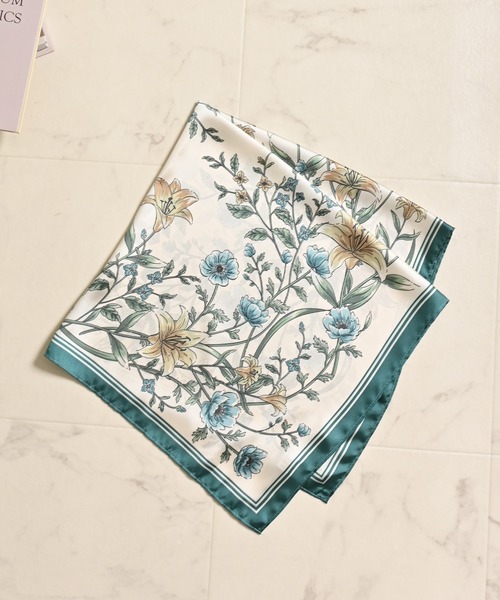 シンプルコーデのアクセントに◎ 【デザイン】 レトロなヴィンテージ柄で、シンプルなコーデに映えるデザイン。 【素材・機能】 光沢感のあるサテン生地。 【スタイル】 首元やヘアにはもちろん、バッグなどにもアレンジ自在。 1点投入で定番スタイルをランクアップ◎ ※素材の特性上、引っかかりやすいので、ご注意ください。 ※湿度・摩擦により多少色落ちする可能性があります。 品番:281-132-9514
