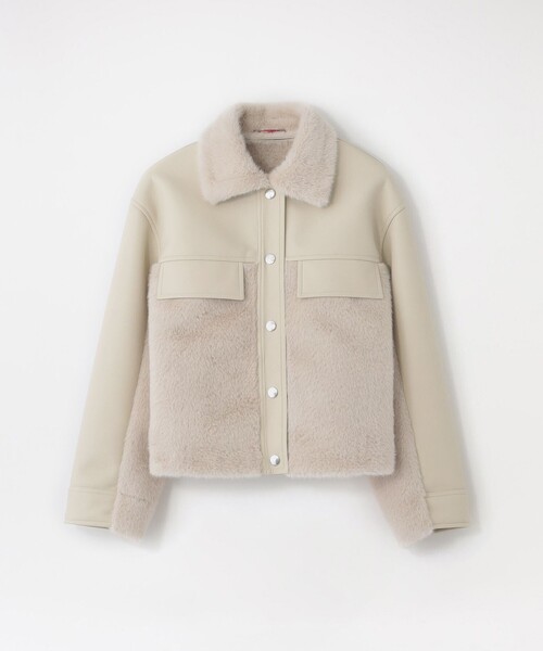 ファーとレザーを切り替えたデザインが特徴のワークブルゾン【素材】フェイクファーと合成皮革をボンディング加工により張り合わせた特別な素材を使用。カラーは、オフホワイト、アイスグレー、チョコレートブラウンの3色展開です。【シルエット/デザイン】Gジャンのエッセンスを落とし込みつつ、ミニマルにまとめたデザイン。肩のおちるゆったりとしたサイジング。丈はヒップ上の、ショート丈です。異素材の切り替えがデザインアクセント。【スタイリング/その他】ワイドパンツでこなれたスタイリングから、スカートやワンピースで合わせたスタイルまで使える万能なブルゾンです。━━━━━━━━━━━━━━━━━━━━━━━━━━お買い物をお楽しみ頂くために<商品のお気に入り登録>完売カラーの再入荷通知など、お得な情報をお届けします。<注意事項>この商品はサンプルでの撮影を行っています。実際の商品とイメージが異なる場合がございます。撮影環境により、光の当たり具合で色味が違って見える場合があります。あらかじめご了承下さい。