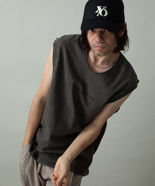 CREWNOT bleed36:D.BROWN H175cmのモデルが48サイズを着用05:BLACK H175cmのモデルが48サイズを着用最も力を注いだのは、Vネックとクルーネックのバランスをとったネックライン。シャツのインナーとのレイヤードを考慮し、襟元の美しいラインが自然と浮かび上がるよう、何度も試作を重ねました。単品で着用した際も、計算されたネックラインが程よいルーズ感を演出し、大人の余裕を感じさせる仕上がりになっています。ショルダーまでの絶妙なバランスを持つノースリーブデザインが特徴で、肩のラインを美しく見せる工夫を施しています。そして最も注目すべきは、その色落ち加工です。私たちの熟練した技術により、全体が均一にフェードするのではなく、部分的にランダムな色落ち感を表現しました。まるで着る人の個性を映し出すかのように、1点1点微妙に違う表情を持っています。そしてこの特別な仕上げは、あなた自身のスタイルにぴったりフィットする一着を見つける楽しさをもたらしてくれるでしょう。フロントに同系色の染み込みロゴプリントが入っています。加工済なので家庭洗濯が可能で、洗濯後のサイズ変化の心配もありません。