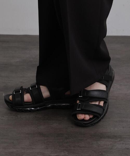 【素材】アッパー:お手入れが簡単な合成皮革を使用しています。ソール:耐久性のある合成底を使用しています。軽量で、天候を気にせずデイリーにお使いいただけます。【デザイン】スタイルやお好みに合わせて3種類のデザインから選べるカジュアルサンダル。クリアパーツを使用したインパクトのあるボリュームソールを採用しています。内部の支柱が見えるテクニカルなルックスが、足元にモードなアクセントを加えます。クッション性が快適な履心地を提供し、約4cmのヒール高でスタイルアップ効果も期待できます。トリプルベルト(019)ナイロン素材のストラップと合成皮革を組み合わせた、スポーティーでアクティブな印象の3本ベルトデザイン。それぞれのベルトでフィット感の調整が可能です。グルカデザイン(119)編み込んだようなアッパーデザインが上品な印象のグルカタイプ。サンダルながらもラフになりすぎず、きれいめなスタイリングにもマッチします。クロスデザイン(219)太めの合成皮革ストラップをクロスさせた、ミニマルで洗練されたデザイン。シンプルな構成が、ボリュームのあるソールを一層引き立てます。- BRAND CONCEPT -時代を超えて支持されるトラディショナルなアイテムをベースに、アソビ心とストリートの自由な発想を取り入れ、日本独自のミックススタイルを提案します。【気になる商品はお気に入り登録をおススメ】▼商品のお気に入り登録完売しているカラーの再入荷通知や、ラスト1点、セールの通知をお知らせいたします。▼ブランドのお気に入り登録新商品や再入荷など、いち早くブランドの情報を受け取ることができます。※照明の関係により、実際よりも色味が違って見える場合があります。また、パソコン・スマートフォンなどの環境により、若干製品と画像のカラーが異なる場合もございます。店舗へのお問い合わせ商品番号:979-05605●製品寸法:55(25.5cm):ヒール高4cm65(26.5cm):ヒール高4cm75(27.5cm):ヒール高4cm備考:重量:片足約435g(サンプルサイズ)