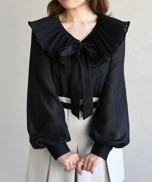*-*-*-2026 Spring&Summer collection-*-*-*華やかなフリルカラーとリボンデザインが目を引く、着映えブラウス。顔まわりを明るく見せる大きめの襟が、コーディネートの主役になる一枚です。程よく透け感のある軽やかな素材を使用し、ふんわりとしたボリュームスリーブが女性らしさを演出します。スカートとのスタイリングはもちろん、パンツ合わせで甘辛なスタイルもお楽しみいただけます。【 お買い物をお楽しみいただく為に 】▼お気に入り登録をオススメします。 『♡』をクリックすると…・《商品のお気に入り登録》で再入荷通知や ラスト1点の通知、セールやクーポンの通知も 受け取ることができます。・《ブランドのお気に入り登録》で新作商品や再入荷など、 お得な情報を受け取ることができます。