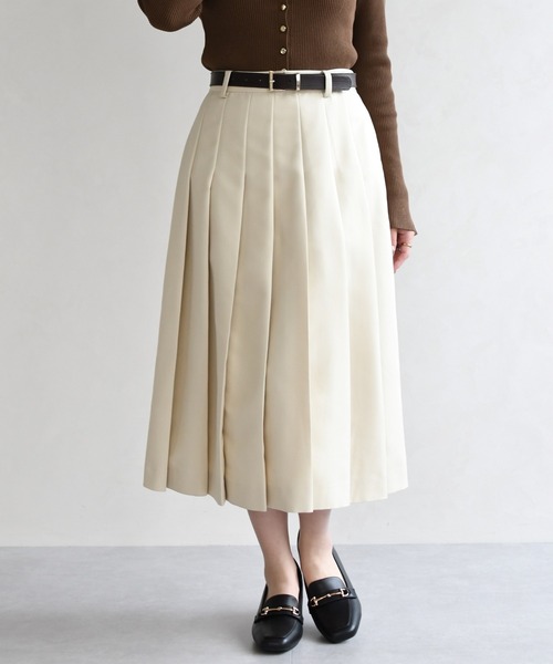 -*-*-*-2026 Spring&Summer collection-*-*-*-チノ風素材に、プリーツを施しトラッドなデザインに落とし込みました。生地は適度にハリ感があり、腰回りが崩れにくく、立体的ですっきりとしたシルエットが特徴です。スカーフ付きニットや、襟付きニットなどとの合わせがおすすめ。取り入れるだけで旬なスタイリングが完成します。【 お買い物をお楽しみいただく為に 】▼お気に入り登録をオススメします。 『♡』をクリックすると…・《商品のお気に入り登録》で再入荷通知や ラスト1点の通知、セールやクーポンの通知も 受け取ることができます。・《ブランドのお気に入り登録》で新作商品や再入荷など、 お得な情報を受け取ることができます。