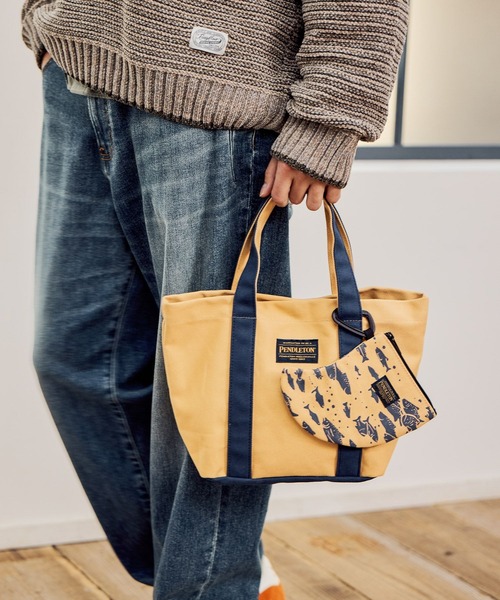 ーーーアメリカの老舗ブランド PENDLETONとの別注トートバッグ。シンプルで使いやすいサイズのミニトートに、取り外し可能なカラビナ付きフィン型ポーチを付けたセットアイテム。トートはペットボトルが楽々入るサイズ感で、普段使いに最適な大きさ◎フィン型ポーチはチャームとしてはもちろんですが、バッグインポーチとして小物の仕分けなどの使用にも便利です♪ーーー※屋外での撮影画像は光の加減で実際の商品より明るく見えたり、風合いが異なって見える場合がございます。商品の色味はスタジオ撮影の画像を参考にして下さい。1909年オレゴン州ペンドルトンの町に自社紡績工場を創業し、ネイティブアメリカン向けのトレーディングブランケットの生産を開始しました。ウールブランケットやシャツに代表されるPENDLETON(ペンドルトン)ブランドはアメリカの良心と呼ばれています。PENDLETON(ペンドルトン)の全ての商品に縫い付けられた織りネーム。ここには「WARRANTED TO BE A PENDLETON(ペンドルトン製品であることを保証する)」と書かれています。これこそ今も昔も変わらないペンドルトンの誇りなのです。-------------------------------------≪お買い物をよりお楽しみいただくために≫◆商品のお気に入り登録(ハートマークをクリック)完売カラーの再入荷通知や、完売間近の通知、セールの通知も受けることができます。◆ブランドのお気に入り登録新商品や再入荷など、いち早くブランドのお得な情報を受け取ることができます。-------------------------------------